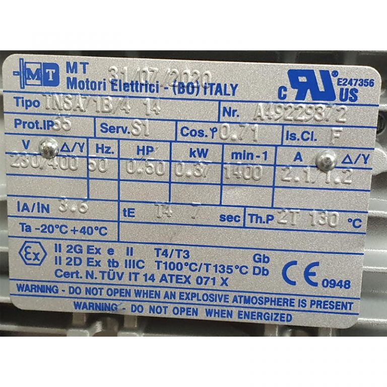 MOTOR ATEX TN 71B4 IMB14 0.37KW 0.5HP 4P IE1 230-400V 50HZ IP65 MARCA MT