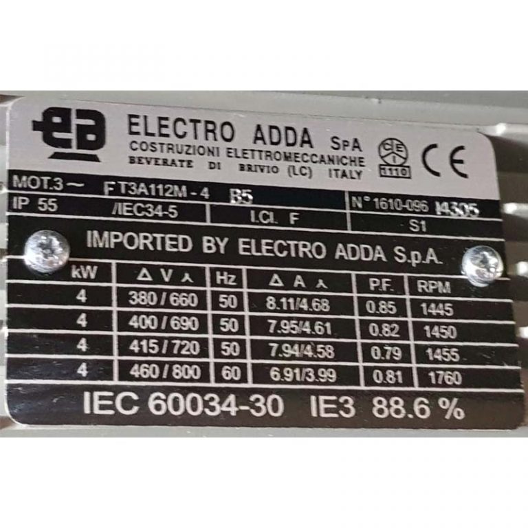 MOTOR FT3A112MT KW=4 4P B5 V=400/690/50 HZ IE3 PTC MARCA ELECTRO ADDA