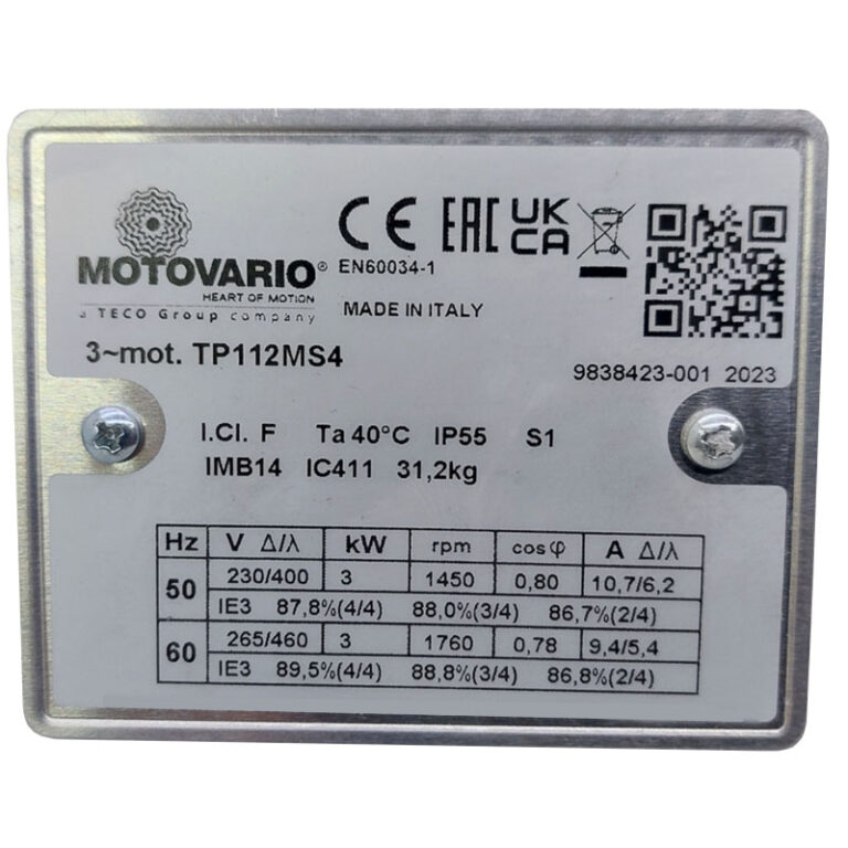 Requiere mas informacion sobre MOTOR TP112MS4 IMB14 KW=3/3 V=230-400/265-460 50/60HZ IP55 IE3 MARCA MOTOVARIO? Pulse enviar mensaje para contactar a un asesor.