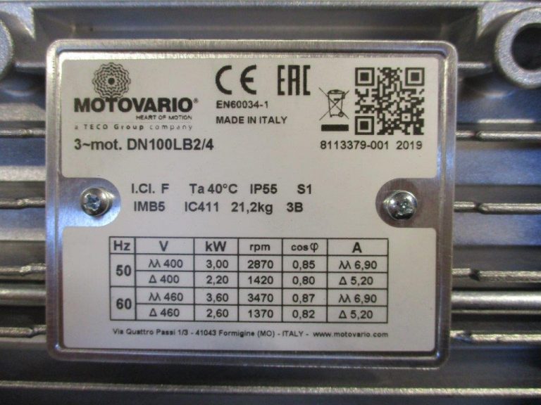MOTOR D100LB2/4 2/4P KW=3.0-2.2/3.6/2.6 IMB5 400-460V 50/60HZ MARCA MOTOVARIO