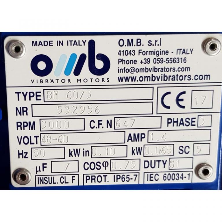 MOTOVIBRADOR BM 60/3 V=48/60 RPM=3000 KW=0.065 MARCA OMB