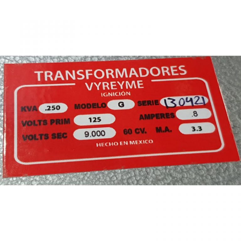 Requiere mas informacion sobre TRANSFORMADOR DE IGNICION G.250 KVA PRIM 125V 0.6A SEC 9000V 3.3MA MARCA VYREYME? Pulse enviar mensaje para contactar a un asesor.