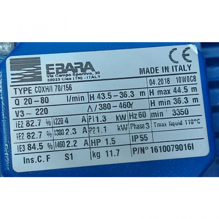 BOMBA CDXH/I 70/156 V.220/380-460 60HZ CODIGO 1610079016I MARCA EBARA