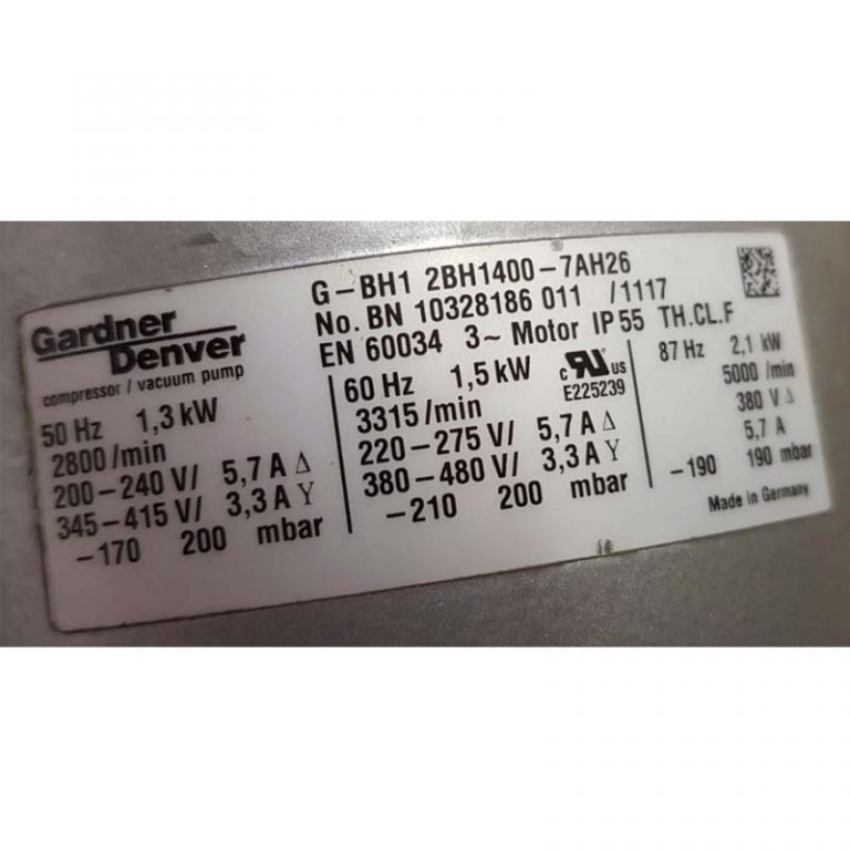 Requiere mas informacion sobre BOMBA DE VACIO 2BH1400-7AH26 KW=1.3 200-240/345-415V MARCA GARDNER DENVER ELMO-RIETSCHLE? Pulse enviar mensaje para contactar a un asesor.
