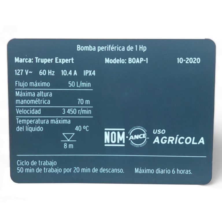 BOMBA PERIFERICA BOAP-1 HP=1 50L/MIN COD. 10070 MARCA TRUPER