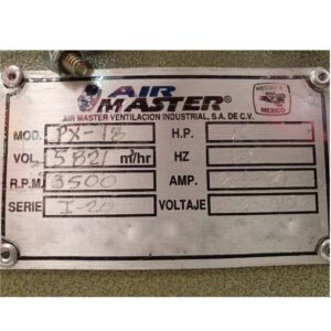 EXTRACTOR CENTRIFUGO MOD. PX-18-T 31426 CFM (5,821 M3/HR) C/MOTOR DE 10 HP MARCA AIRMASTER