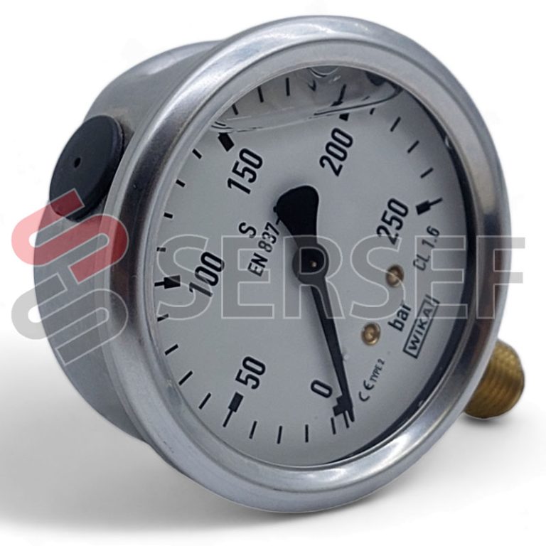 MANOMETRO DE 0-250 BAR CON GLICERINA ARATULA DE 2 1/2″ ENTRADA DE 1/4″ INFERIOR