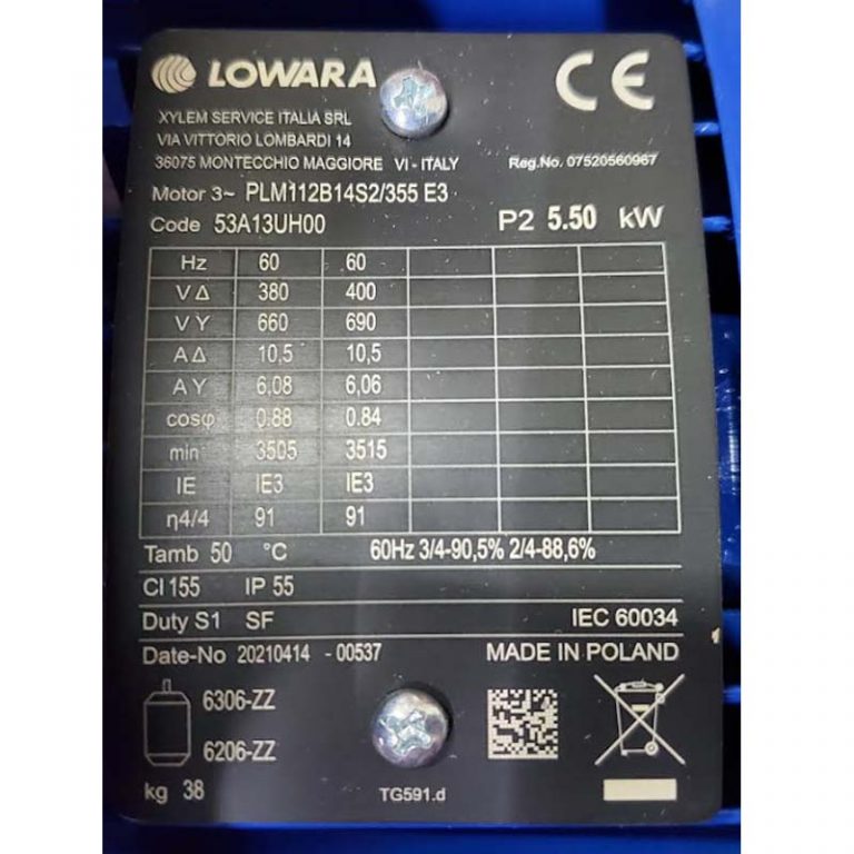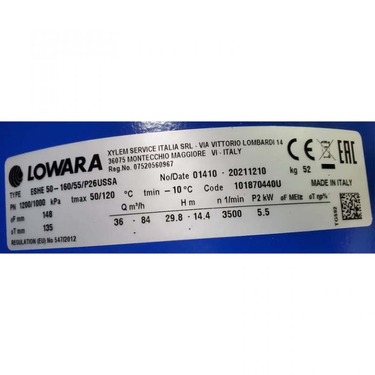 MOTOBOMBA ESHE 50-160/55/P26USSA V.380/ 660 CODIGO 101870440U Q=42-48M/H MOT 128 14S2/375