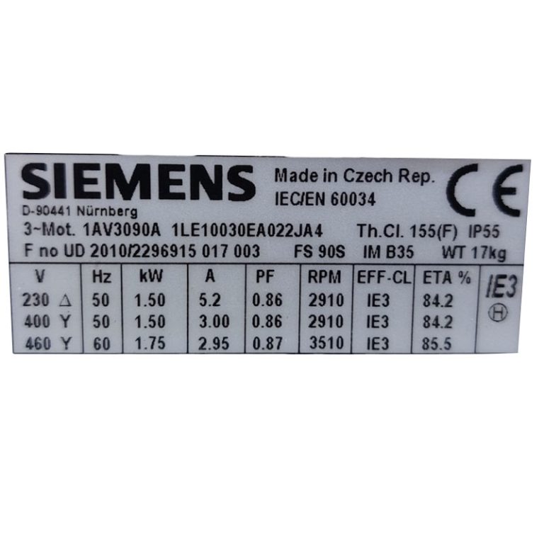 MOTOR 1LE1003 0EA02-2JA4 IMB35 KW=1.5/1.75 2P V=230-400/460 IE3 MARCA INNOMOTICS