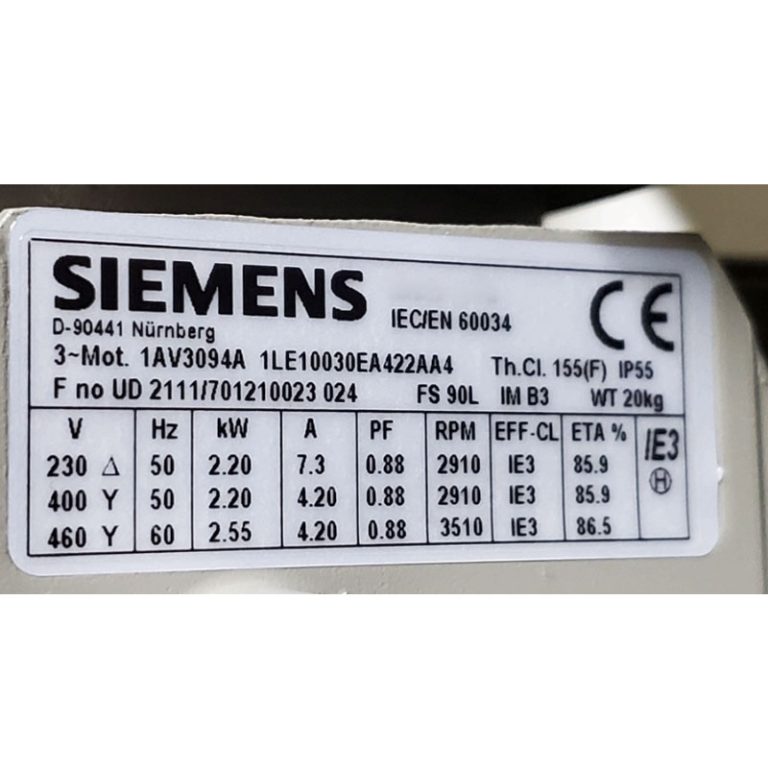 Este motor sustituye al antiguo modelo 1LE1001. Tiene mejor eficiencia energetica, por lo que le sera mas economico de operar. Sustituye de manera directa al SKU 41202141S.