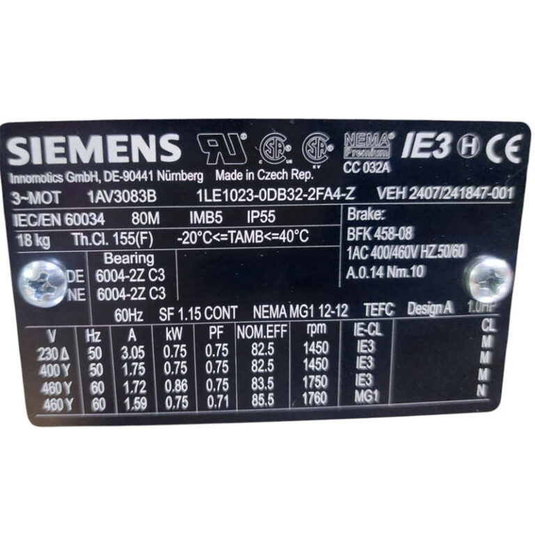 Requiere mas informacion sobre MOTOR 1LE1023-0DB32-2FA4-Z IMB5 KW=0.75/0.86 V=230-400/460 50/60HZ IE3 IP55 INNOMOTICS? Pulse enviar mensaje para contactar a un asesor.