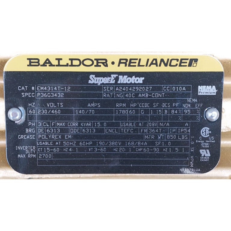 Requiere mas informacion sobre MOTOR ARMAZON 364T HP=60 4P RPM=1775 V=230/460 TEFC EM4314T-12 MARCA BALDOR? Pulse enviar mensaje para contactar a un asesor.