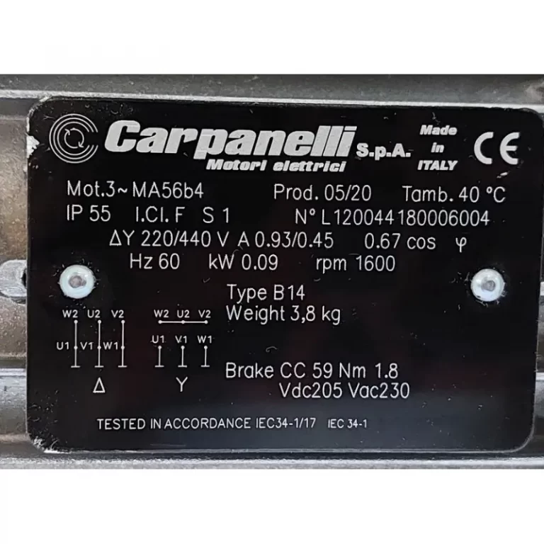 Requiere mas informacion sobre MOTOR AUTOFRENANTE 56B4 IMB14 220/440V 60HZ 0.09KW FRENO CC 59NM MARCA CARPANELLI? Pulse enviar mensaje para contactar a un asesor.