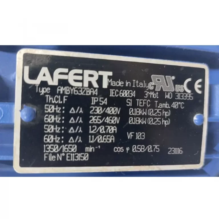 Requiere mas informacion sobre MOTOR AUTOFRENANTE AMBY63ZBA4 KW=0.18 B5 POLOS=4 V=230/400/266/460 HZ=50/60 CON FRENO EN CD MARCA LAFERT? Pulse enviar mensaje para contactar a un asesor.