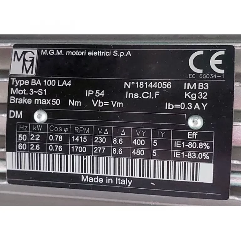 Requiere mas informacion sobre MOTOR AUTOFRENANTE BA100LA4 IMB3 KW=2.2/2.6 V=230-400/277-480 VB=VM DX IP54 MARCA MGM DX=DOBLE CAJA DE BORNES, FRENO 5DNM IE1? Pulse enviar mensaje para contactar a un asesor.