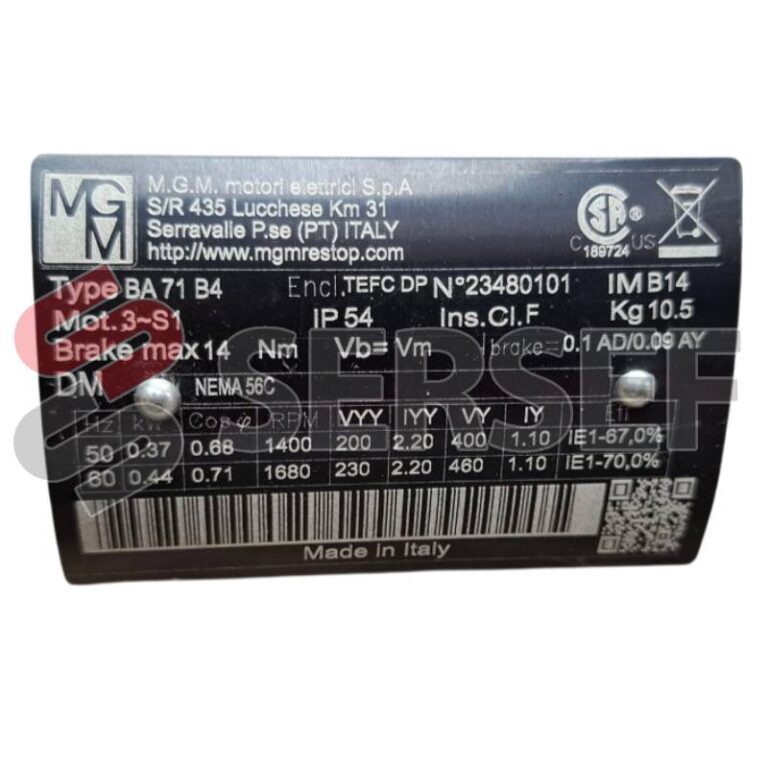 MOTOR AUTOFRENANTE BA71B4 IMB14 KW=4P 230/460V FRENO AC NEMA 56C IP54 MARCA MGM 0.37