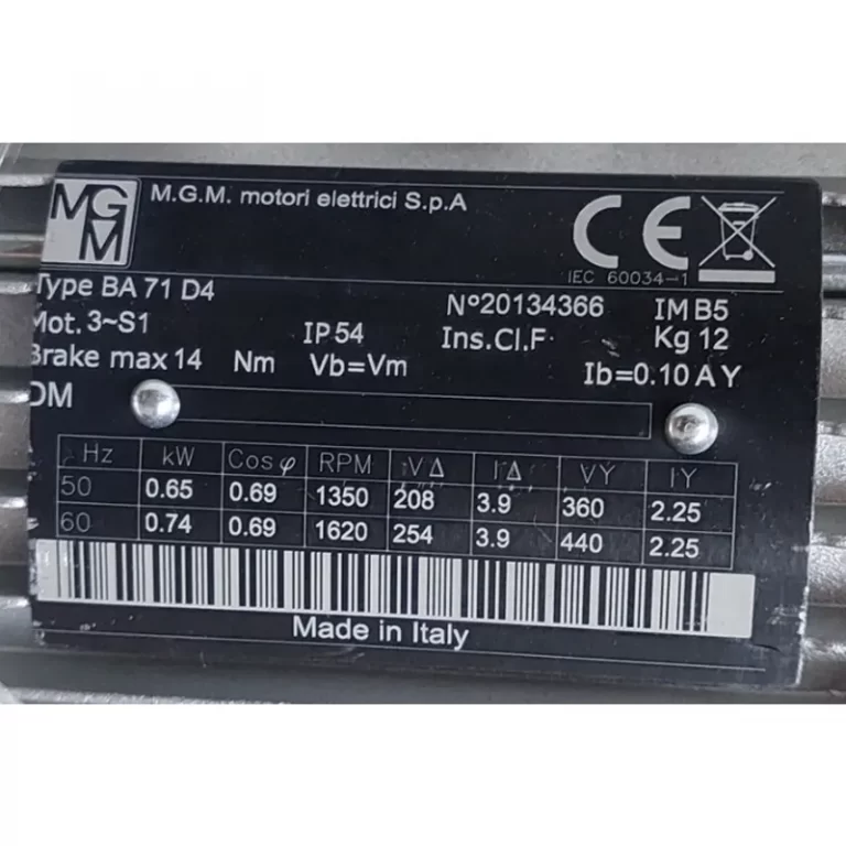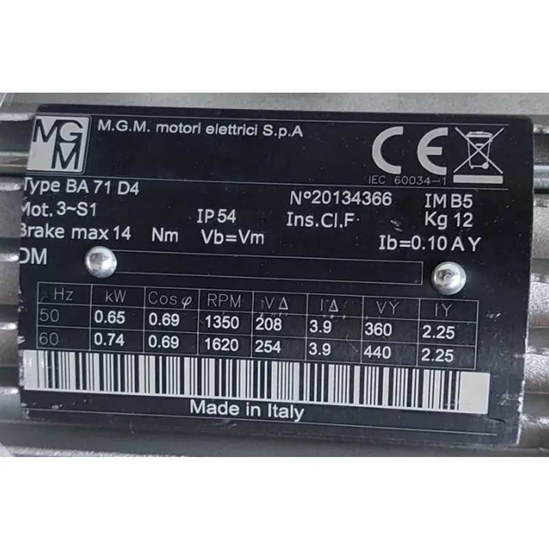 Requiere mas informacion sobre MOTOR AUTOFRENANTE BA71D4B5 KW=0.65/0.74 V=230/400 HZ=50 IP54 IE1 MARCA MGM? Pulse enviar mensaje para contactar a un asesor.