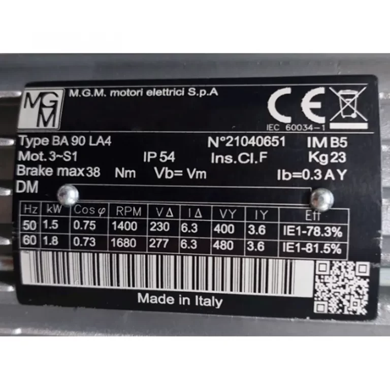 Requiere mas informacion sobre MOTOR AUTOFRENANTE BA90LA4/B5 V=230/400/277/480 HZ=50/60 HZ KW=1.5/1.8 CON DOBLE CAJA DE CONEXIONES MARCA MGM? Pulse enviar mensaje para contactar a un asesor.