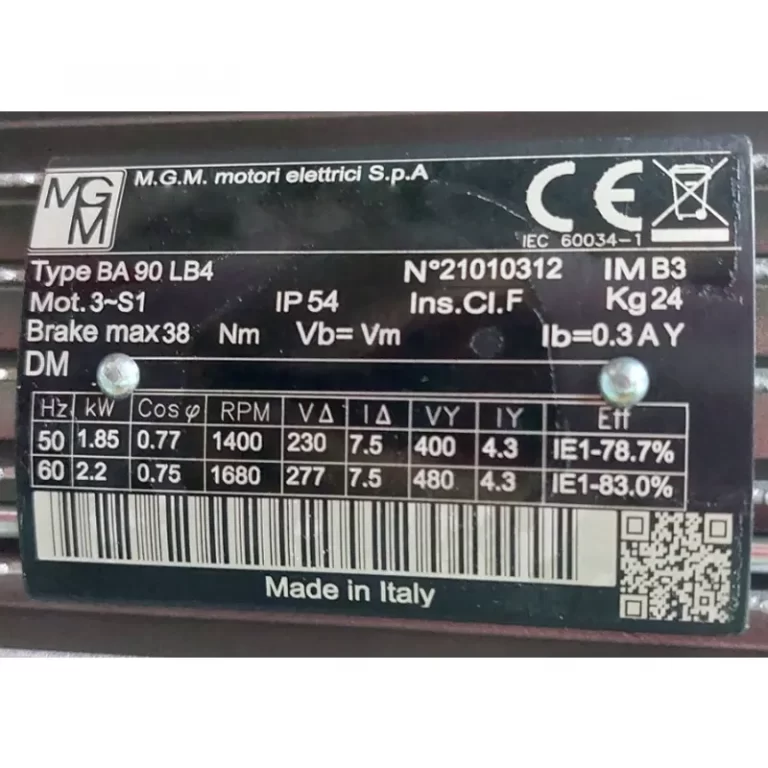 Requiere mas informacion sobre MOTOR AUTOFRENANTE BA90LB4 IMB3 KW=1.85/2.2 V=230-400/277-480 DX VB=VM IP54 MARCA MGM DX=DOBLE CAJA DE BORNES, FRENO 38NM IE1? Pulse enviar mensaje para contactar a un asesor.