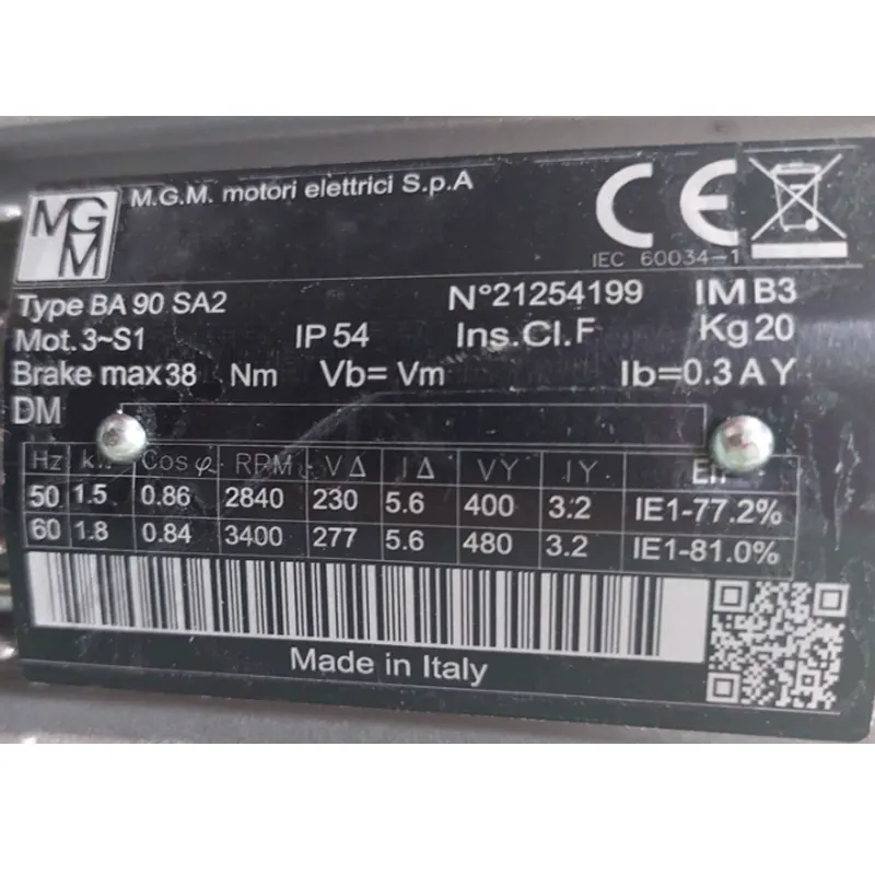 MOTOR AUTOFRENANTE BA90SA2 IMB3 KW=1.5/1.8 V=230-400/277-480 DX VB=VM IEP54 MARCA MGM DX=DOBLE CAJA DE BORNES, FRENO 38NM IE1