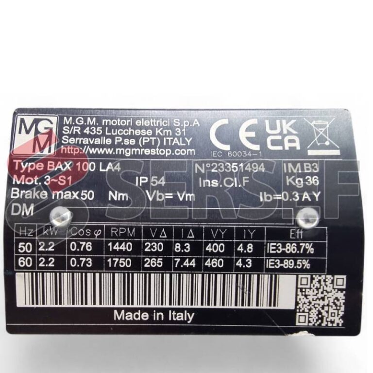 MOTOR AUTOFRENANTE BAX100LA4 IMB3 KW=2.2 V=230-400 50HZ IP54 DX FRENO AC IE3 MARCA MGM