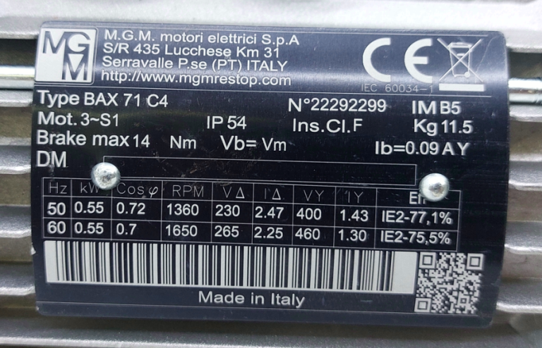 Requiere mas informacion sobre MOTOR AUTOFRENANTE BAX71C4 IMB5 KW=0.55/0.65 230/277-400/480V 50/60HZ DX MARCA MGM? Pulse enviar mensaje para contactar a un asesor.