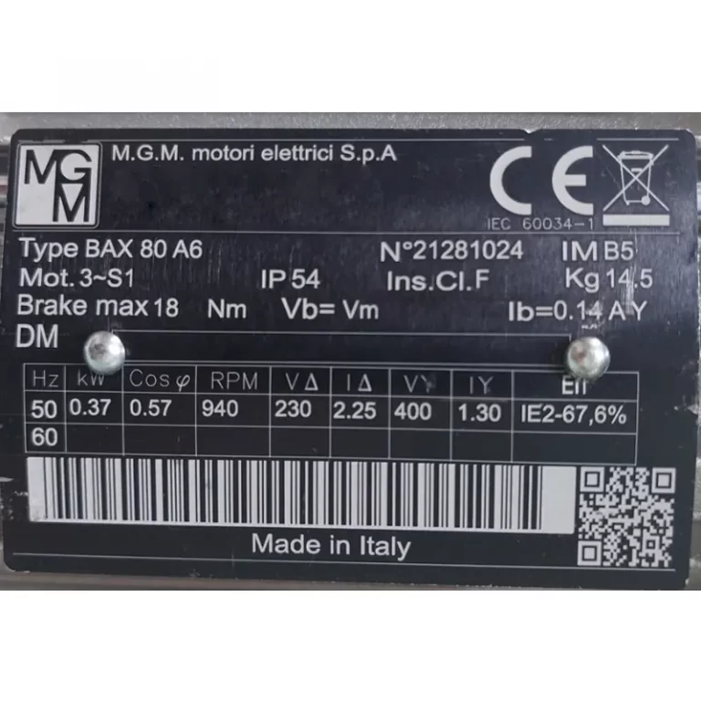 MOTOR AUTOFRENANTE BAX80A6 IMB5 KW=0.37 6P IP5 V=440 60 HZ DX MARCA MGM