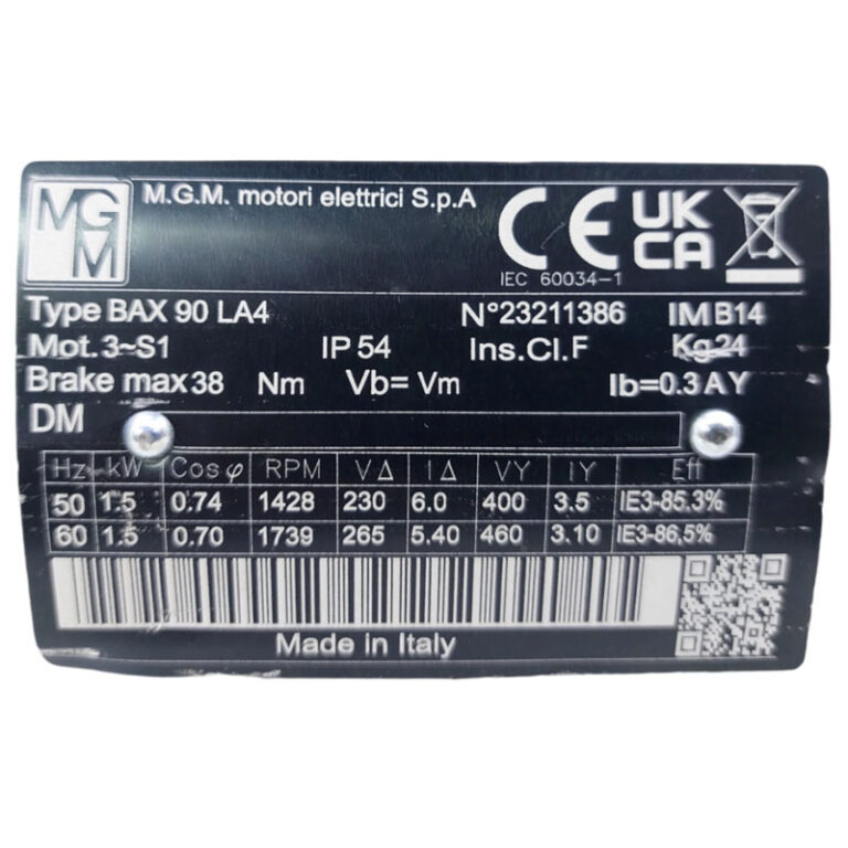 Requiere mas informacion sobre MOTOR AUTOFRENANTE BAX90LA4 IMB14 KW=1.5/1.8 V=230/400 50HZ IE3 FRENO AC DX MARCA MGM DOBLE CAJA DE BORNES? Pulse enviar mensaje para contactar a un asesor.