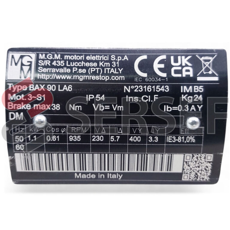 Requiere mas informacion sobre MOTOR AUTOFRENANTE BAX90LA6 IMB5 KW=1.1/1.3 V=230-400/277-480 DX VB=VM IP54 MARCA MGM? Pulse enviar mensaje para contactar a un asesor.