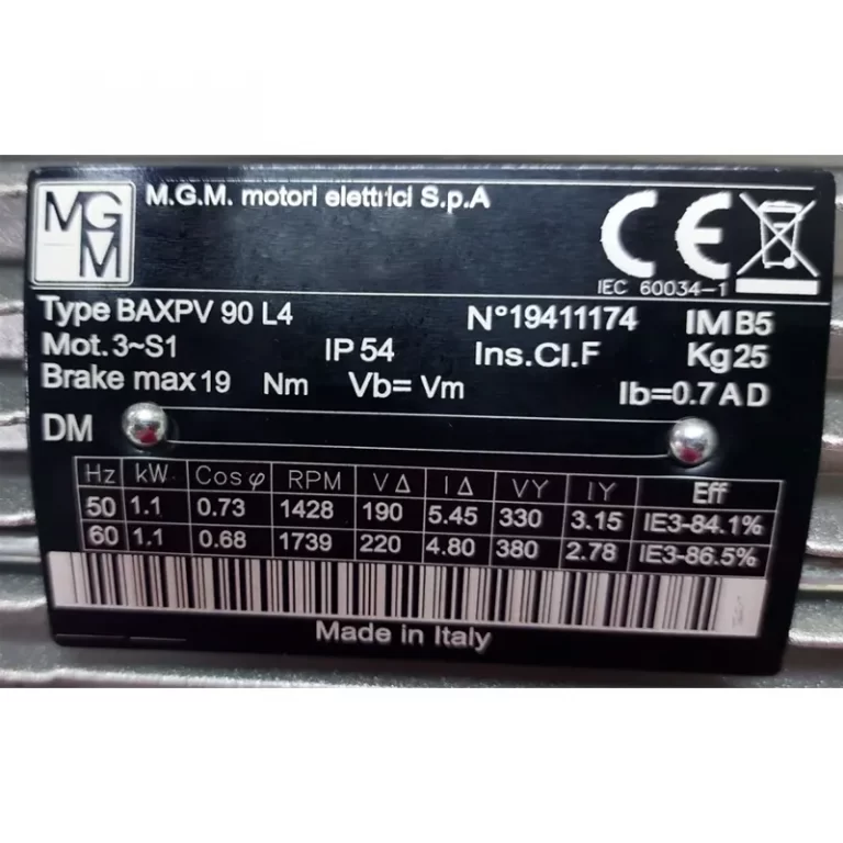 MOTOR AUTOFRENANTE BAXPV90L4 IMB5 KW=1.1 V=190-330/220-380 50/60HZ VB=VM DX IP54 MGM DX=DOBLE CAJA DE BORNES, FRENO 19NM IE3