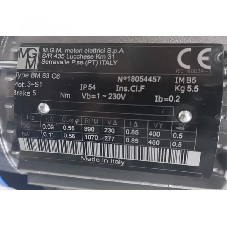 Requiere mas informacion sobre MOTOR AUTOFRENANTE BM63C6 IMB5 KW=0.09/.11 V=230-400/277-480 VB=230 1F IP54 MARCA MGM? Pulse enviar mensaje para contactar a un asesor.