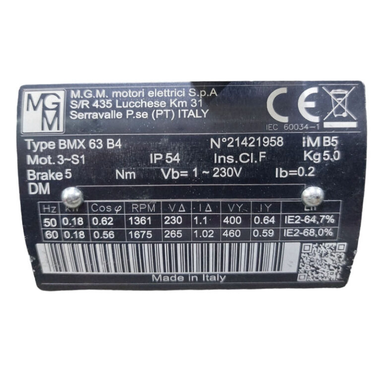 Requiere mas informacion sobre MOTOR AUTOFRENANTE BMX63B4 IMB5 KW=0.18 V=230-400/265-460 IE2 DX MARCA MGM? Pulse enviar mensaje para contactar a un asesor.