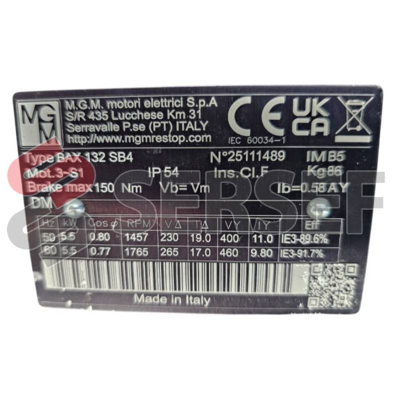 Requiere mas informacion sobre MOTOR AUTOFRENANTE BX132SB4 IMB5 KW=5.5 FA50 V=230/400 50HZ IP54 IE3 8AF44008W BONFIGLIOLI? Pulse enviar mensaje para contactar a un asesor.
