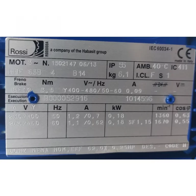 Requiere mas informacion sobre MOTOR AUTOFRENANTE HBF63B4 IMB14 KW=0.18 V=230-400/265-460V FRENO V=400/480 IP55 ROSSI (EX HFF)? Pulse enviar mensaje para contactar a un asesor.