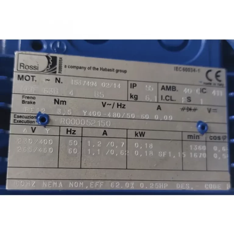 Requiere mas informacion sobre MOTOR AUTOFRENANTE HBF63B4 IMB5 KW=0.18 V=230-400/265-460 FRENO V=400/480 IP55 MARCA ROSSI? Pulse enviar mensaje para contactar a un asesor.