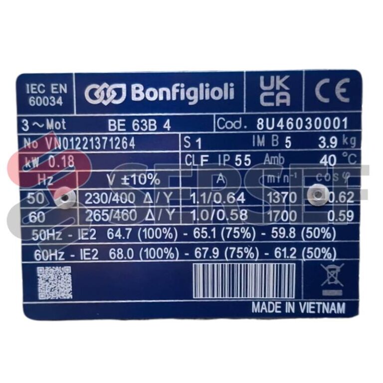 MOTOR BE63B4 IMB5 KW=0.18/0.21 V=230-400/265-460 4P HZ=50/60 IE2 IP55 TB=S BONFIGLIOLI 8U46030001