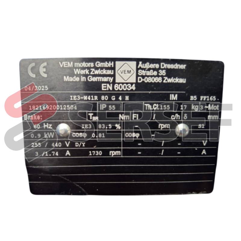 Requiere mas informacion sobre MOTOR IE3-W41R 80 G4 IB5 KW=0.9 P4 T80 V=255/440 60HZ MARCA VEM? Pulse enviar mensaje para contactar a un asesor.