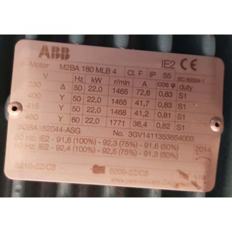 MOTOR M2BA 180MLB4/B3 22KW 230/400-415/ 460 50/60HZ POLOS=4 EFF IE2 MARCA ABB