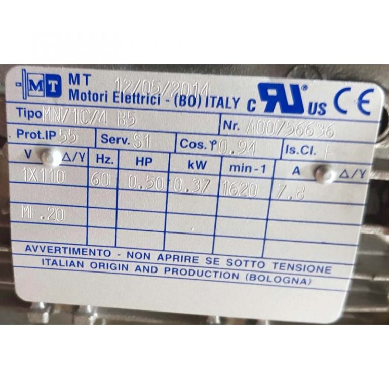 MOTOR MONOFASICO MN71C4B5 KW=0.37 V=110 HZ=60 MARCA MT