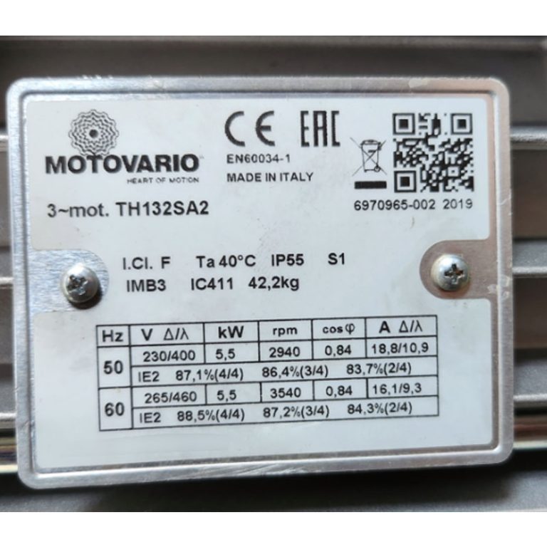 MOTOR TH132SA2 IMB3 KW=5.5/6.6 2 POLOS 230/400-265/460V 50/60HZ MARCA MOTOVARIO