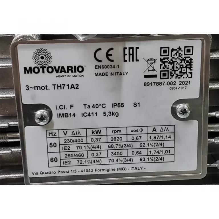 Requiere mas informacion sobre MOTOR TH71A2 IMB14 KW=0.37/0.45 V=230-400/265-460 50/60HZ IE2 MARCA MOTOVARIO? Pulse enviar mensaje para contactar a un asesor.