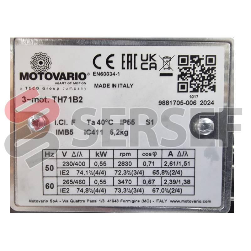 Requiere mas informacion sobre MOTOR TH71B2 IMB5 RPM=2810/3400 KW=0.55/0.65 230-400/265-460V 50/60HZ IE2 MARCA MOTOVARIO? Pulse enviar mensaje para contactar a un asesor.