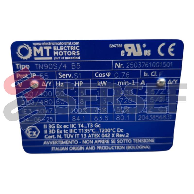 Requiere mas informacion sobre MOTOR TN90S4 IMB5 KW=1.1 V=230/400 50HZ IP55 IE3 ATEX ZONA II-3G-T4/T3 UL/CSA MARCA MT? Pulse enviar mensaje para contactar a un asesor.