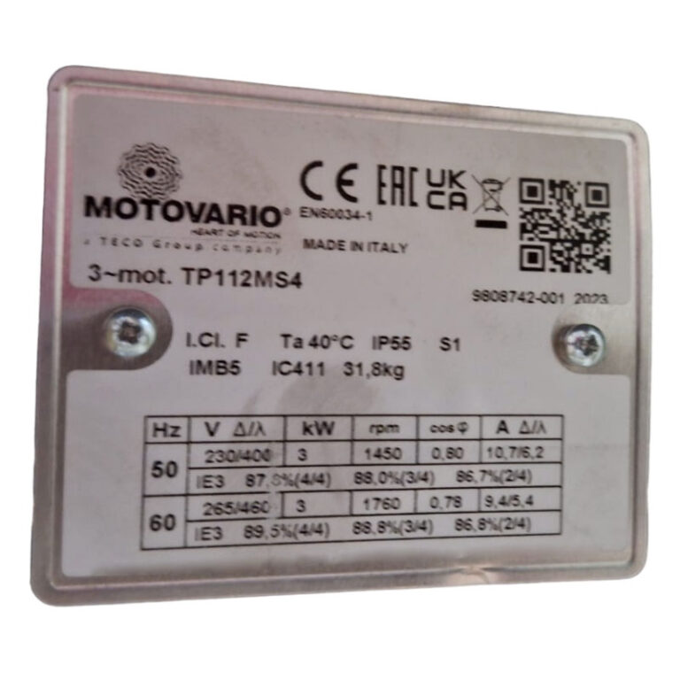 Requiere mas informacion sobre MOTOR TP112MS4 IMB5 KW=3/3 V=230-400/265-460 50/60HZ IP55 IE3 MARCA MOTOVARIO? Pulse enviar mensaje para contactar a un asesor.