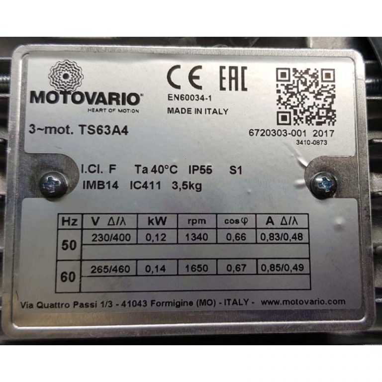 Requiere mas informacion sobre MOTOR TS 63A4 IMB14 KW=0.12/0.14 IE1 POLOS=4 V=230-400/266-460 HZ=50/60 MARCA MOTOVARI? Pulse enviar mensaje para contactar a un asesor.
