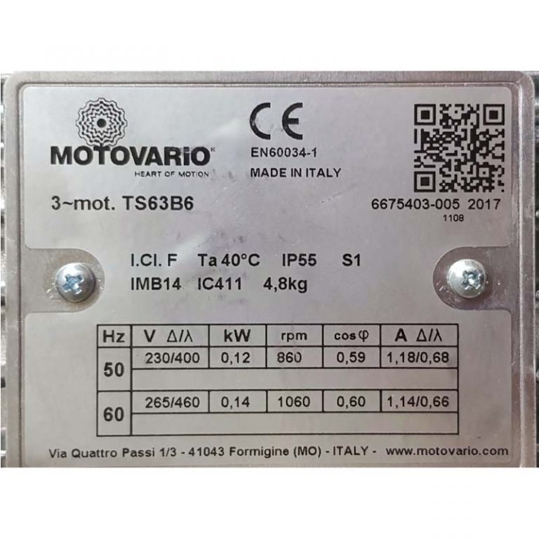 MOTOR TS63B6 IMB5 KW=0.12/0.14 RPM=1060 220/440 HZ=60 MARCA MOTOVARIO