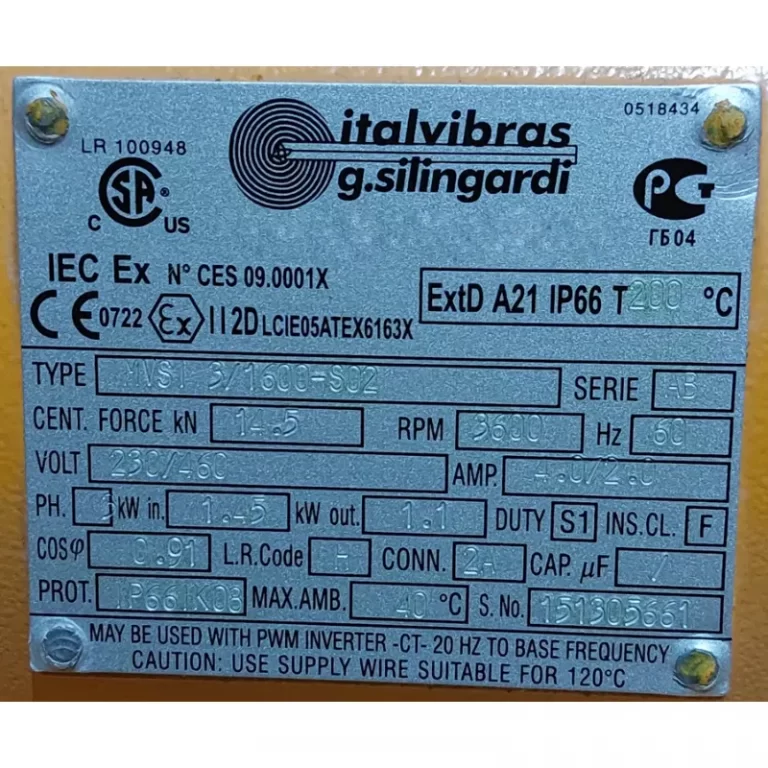 Requiere mas informacion sobre MOTOVIBRADOR MVSI 3/1600 S02 FC 1483KG RPM=3600 TRIFASICO V=230/460 HZ=60 MCA ITALVIBRAS? Pulse enviar mensaje para contactar a un asesor.