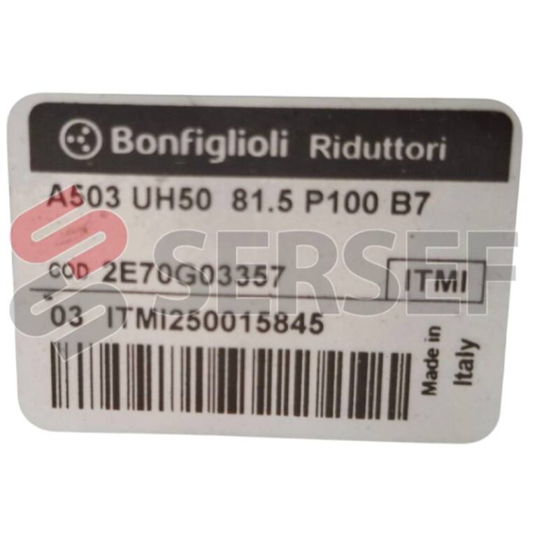Requiere mas informacion sobre REDUCTOR A503 UH50 I=1:81.5 PAM=250/28 B7 COD. 2E70G03357 MARCA BONFIGLIOLI? Pulse enviar mensaje para contactar a un asesor.