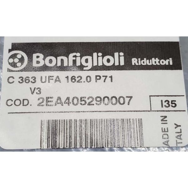 Requiere mas informacion sobre REDUCTOR C363 UFA I=1:162 P71 V3 COD. 2EA405290007 FLECHA=35 MM MARCA BONFIGLIOLI? Pulse enviar mensaje para contactar a un asesor.