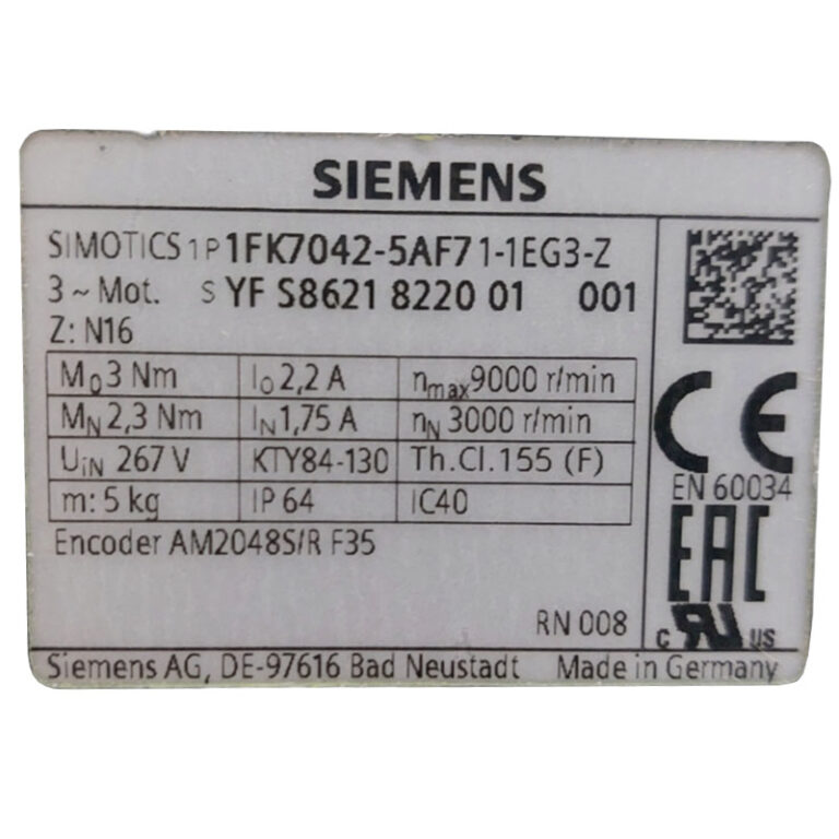 Requiere mas informacion sobre SERVOMOTOR 1FK7042-5AF71-1EG3-Z N16 RPM=3000 ENCODER AM2048S/R F35 IP64 MARCA INNOMOTICS? Pulse enviar mensaje para contactar a un asesor.